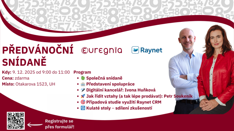Proto vás srdečně zveme na předvánoční snídani Euregnia & Raynet zaměřenou na využití vztahů nejen k růstu firmy.